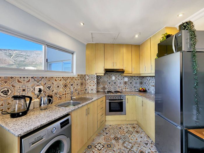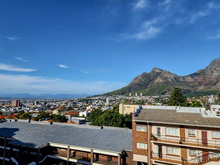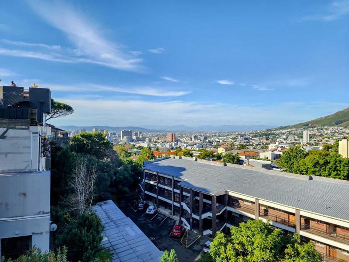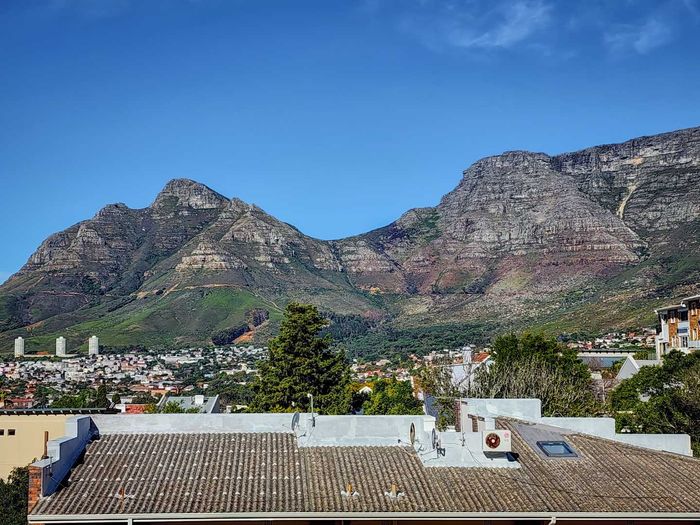 North-facing studio on Signal Hill in vibrant Tamboerskloof, renovated with modern kitchen, American shutters, mountain and city views — Airbnb-friendly and tenanted until March 2026.