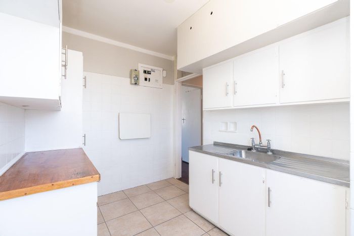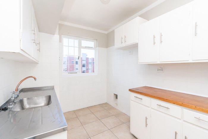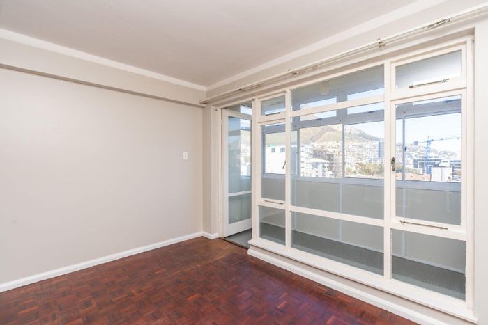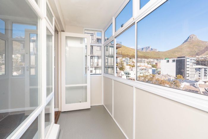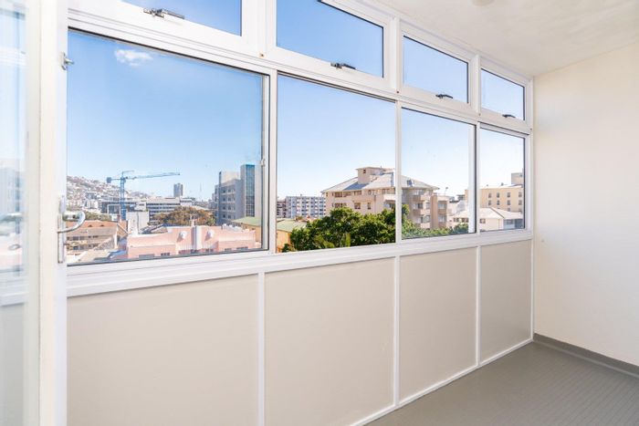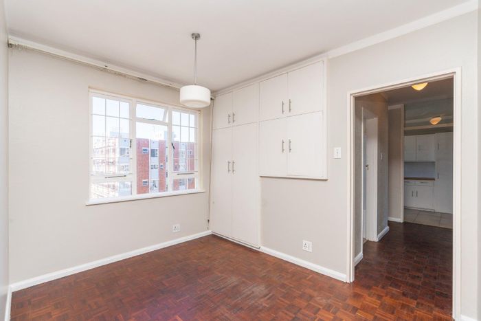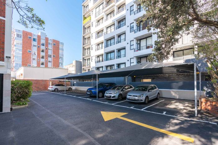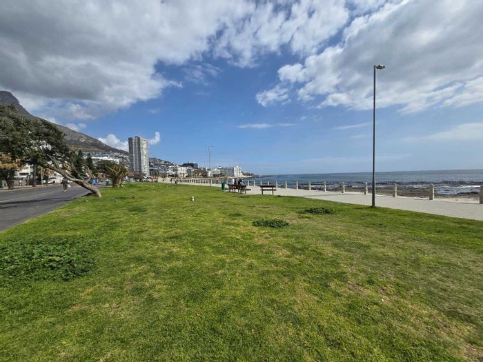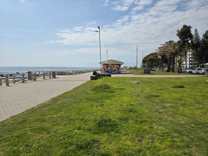 Steps from Sea Point Promenade and cafés — fifth-floor apartment with north-facing balcony views, open-plan living, concierge and 24-hour security. Large 1-bed, 1.5 baths, open parking.