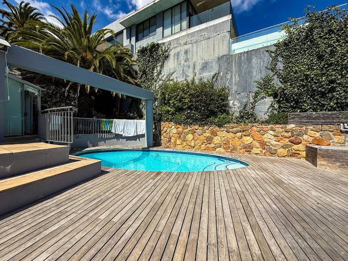 Seaside living in exclusive Fresnaye on the Atlantic Seaboard, ideal for executives, expansive wooden-deck patio with pool and ocean views; fully furnished two-bed, two-bath with open parking.
