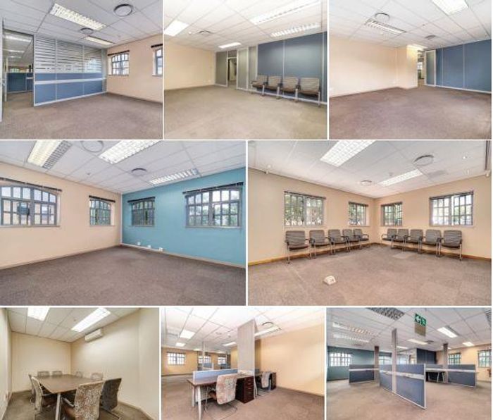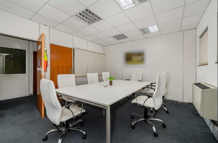Office space in Rondebosch, 612 m², includes boardroom, private offices, and bathrooms. Secure parking available.