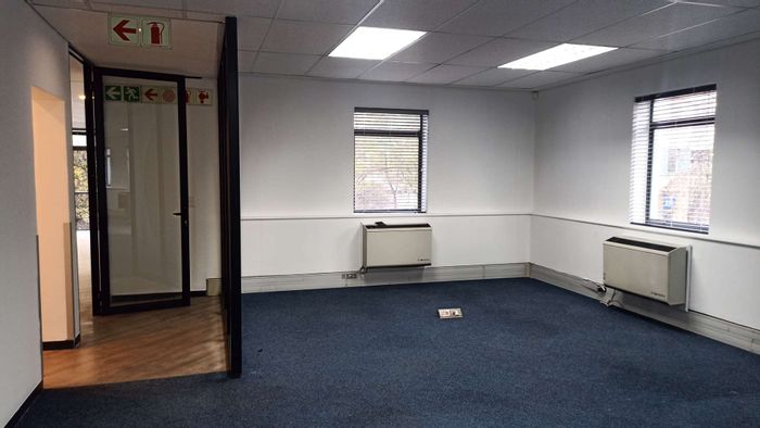 Office 2, first floor, 490 m² with secure access, high-speed fibre, and flexible parking options available for lease.