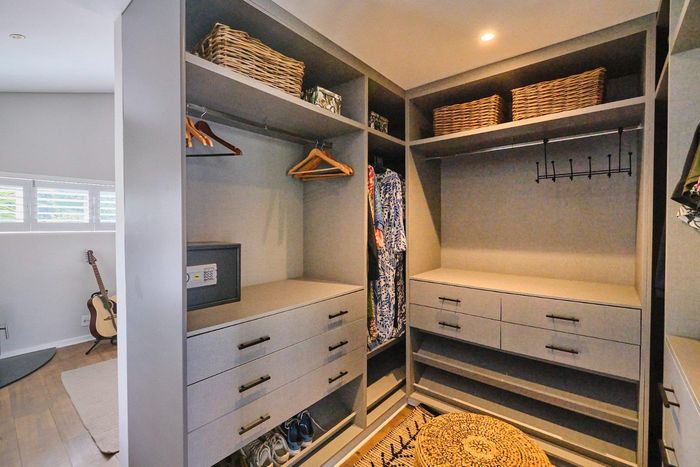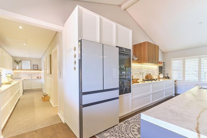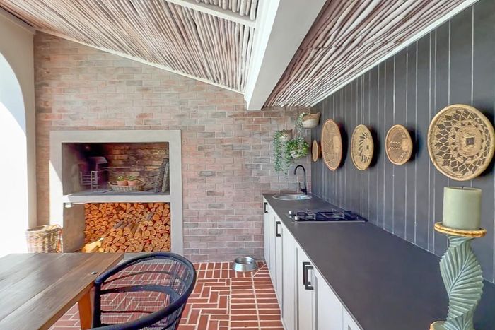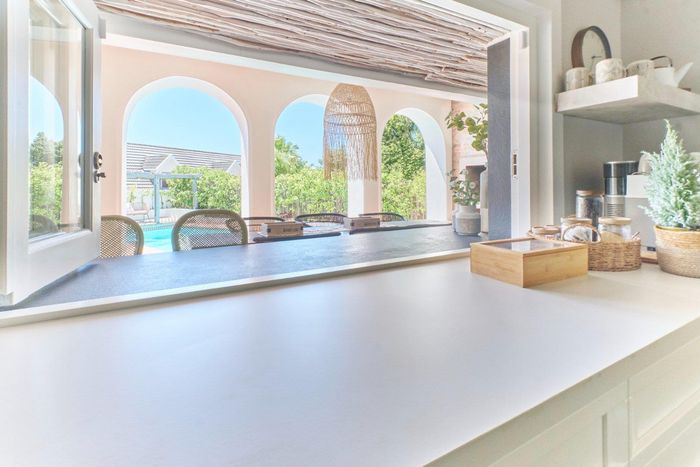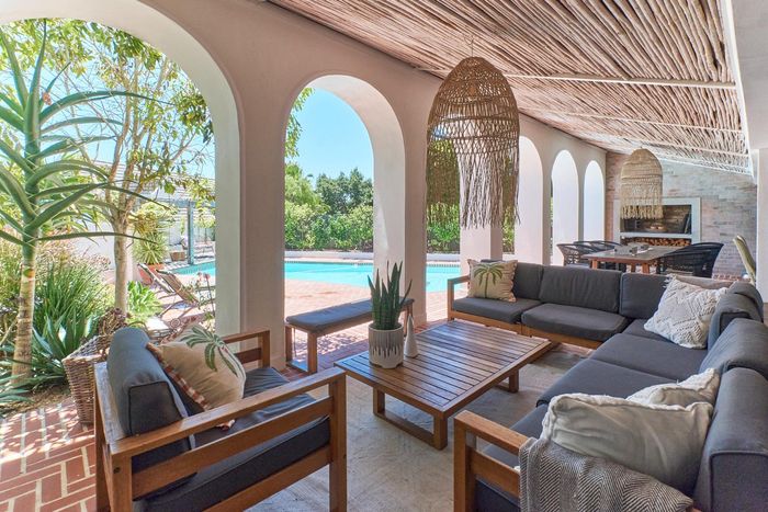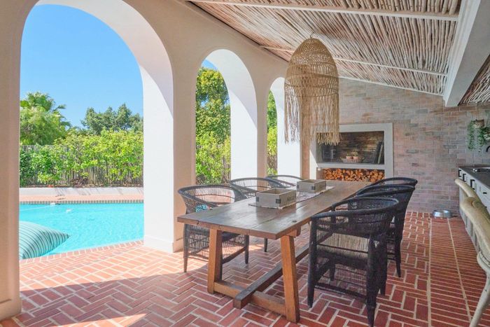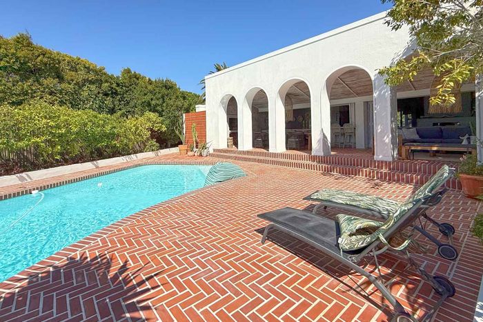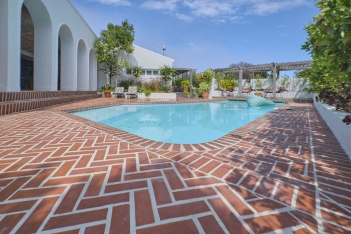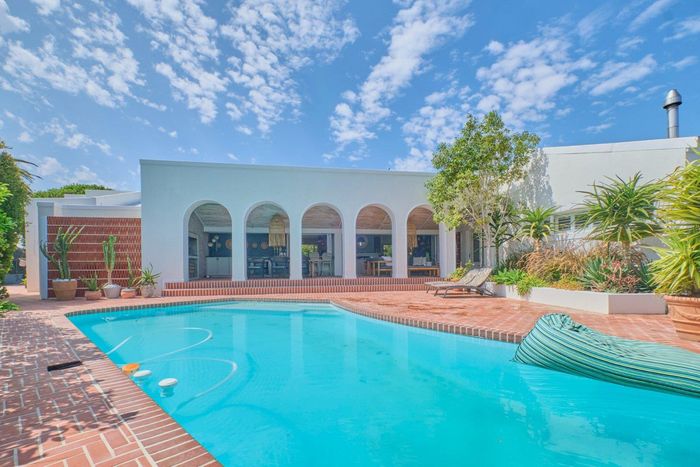 Entertainer's coastal retreat near Blouberg Beach promenade and Milnerton Aquatic Club, featuring an expansive landscaped garden, sparkling pool and outdoor pizza oven. Five bedrooms, four bathrooms and double garage.