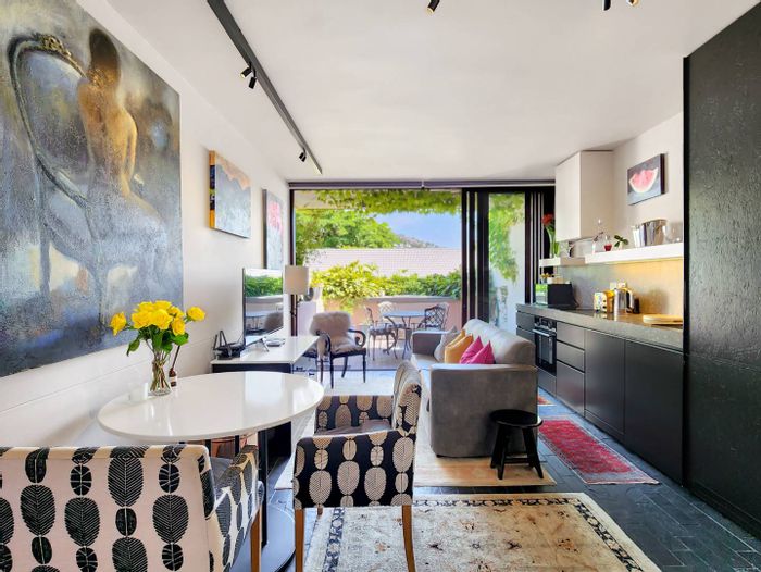 Enjoy effortless mountain-side living in Clarens village with designer interiors and a sunny terrace for entertaining and Lions Head views — one bedroom, one bath, secure parking.