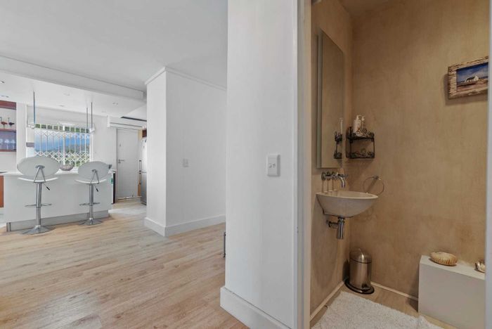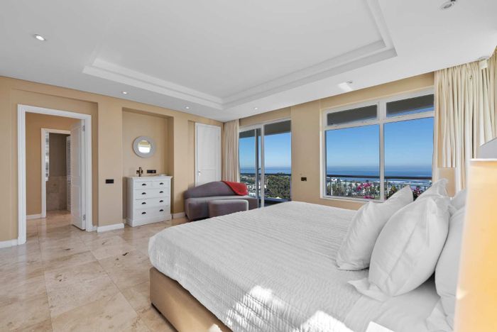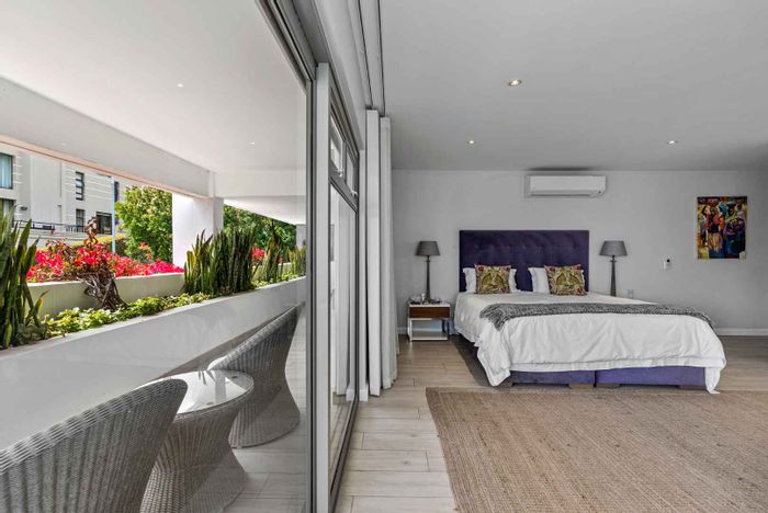 Effortless coastal living set high above Camps Bay with panoramic ocean and mountain views from a front-facing balcony. Three bedrooms, 2.5 bathrooms and two secure parking spaces.