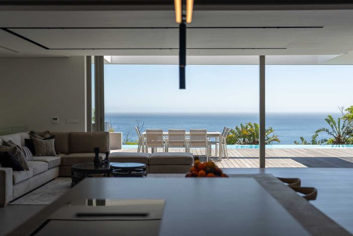 Perched above the bay with 180° Atlantic, Twelve Apostles and Lion’s Head views, this Pedro Roos–designed home boasts a triple-volume entrance, infinity pool and pizza oven; three beds, 2.5 baths.
