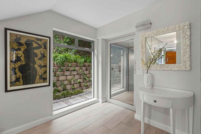 Minutes from Camps Bay Promenade and beaches, multi-level home offers sweeping Signal Hill, Twelve Apostles and ocean views, indoor heated pool with automated cover, self-contained flatlet and two double garages.
