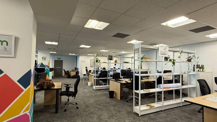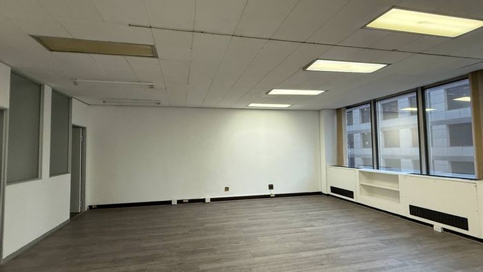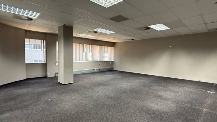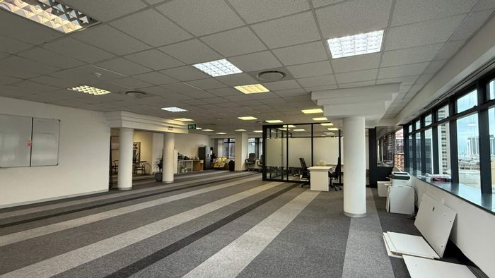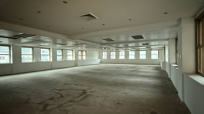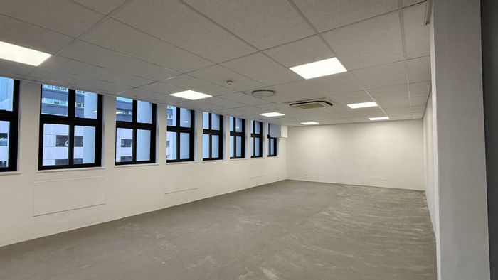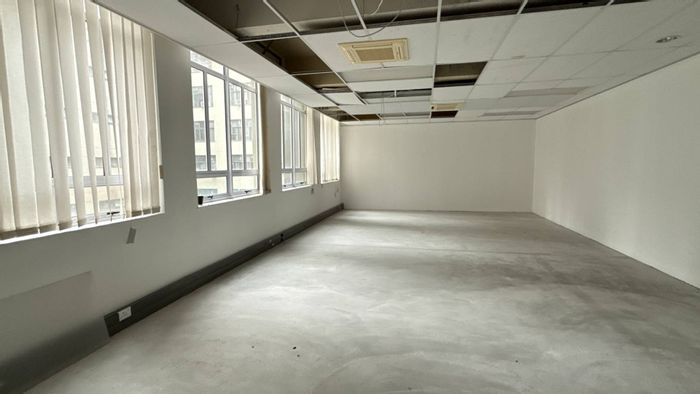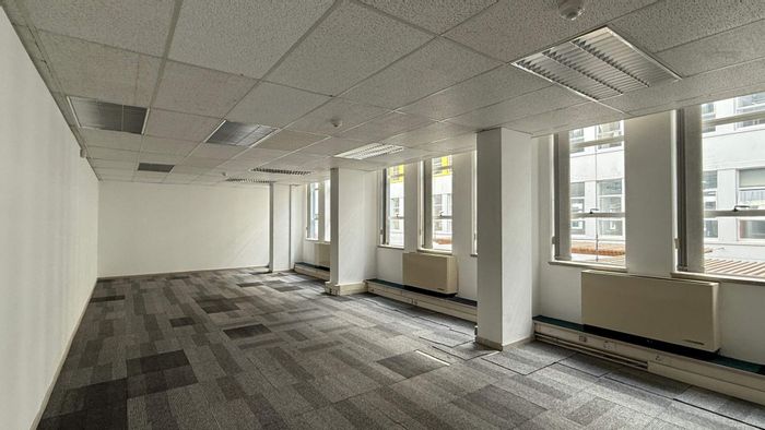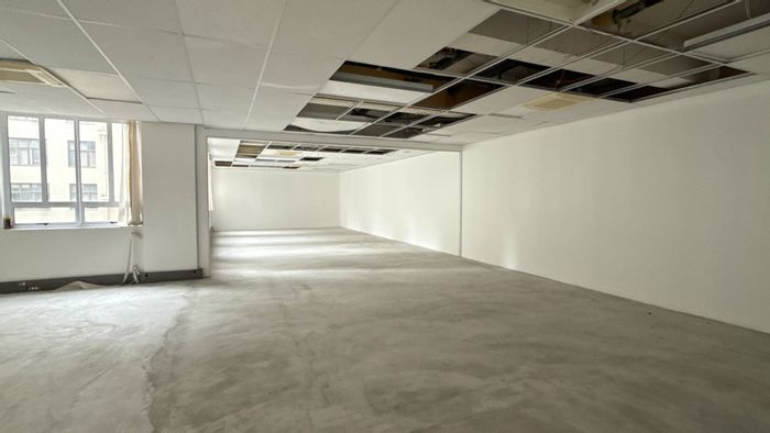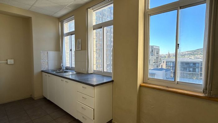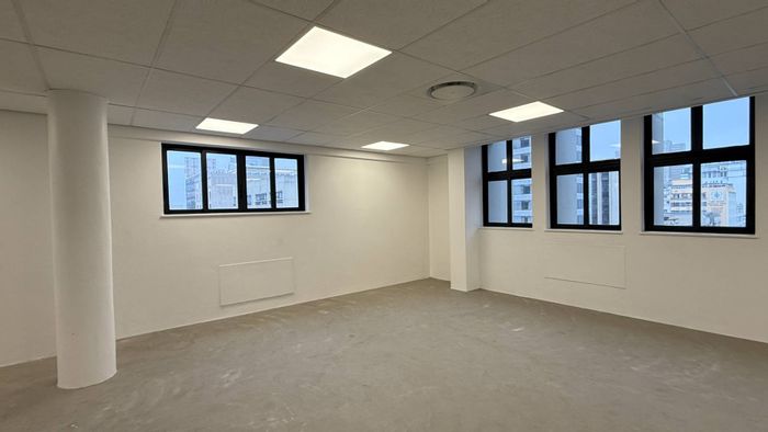 108m² open-plan office space in Cape Town's city centre, featuring kitchenette and lift access. Ideal for small businesses.