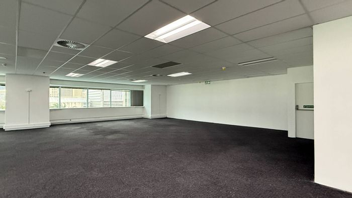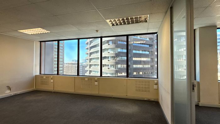 142m² office unit in Cape Town's Foreshore, secure building with access control, high-speed fibre, and on-site parking available.