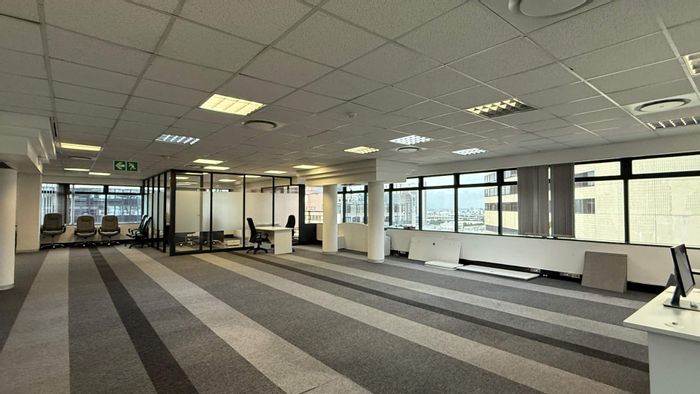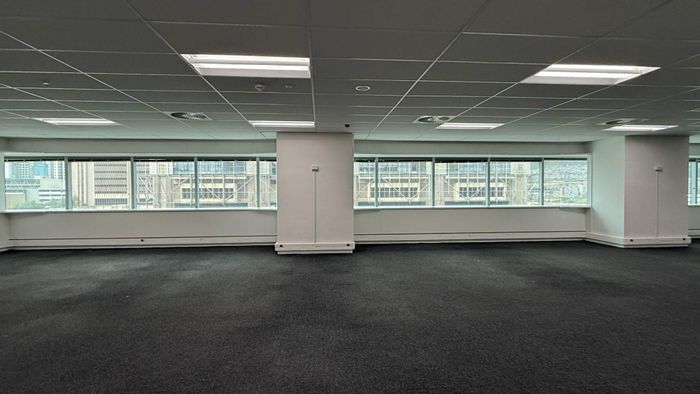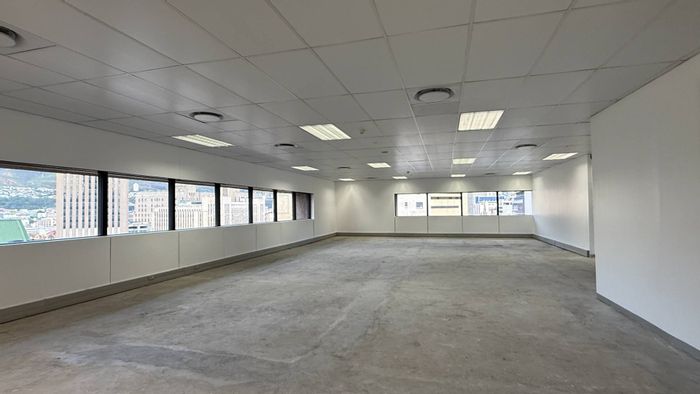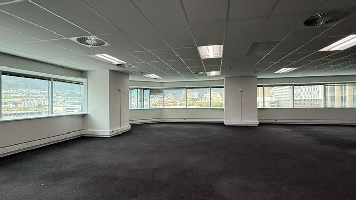 243m² office unit on the 12th floor, open-plan layout, flexible for private offices, located in Cape Town CBD.