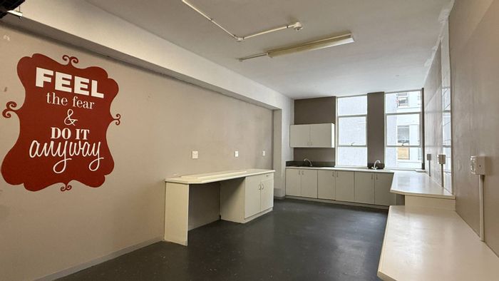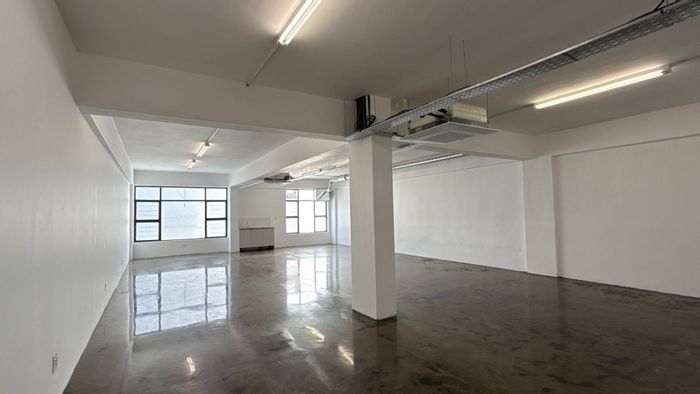 Vibrant CBD workspace on Waterkant Street, steps from Bree Street cafés and MyCiTi. Open-plan 372 m² second-floor unit above an active boxing gym, offering great exposure and shower provision.