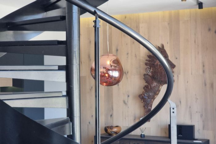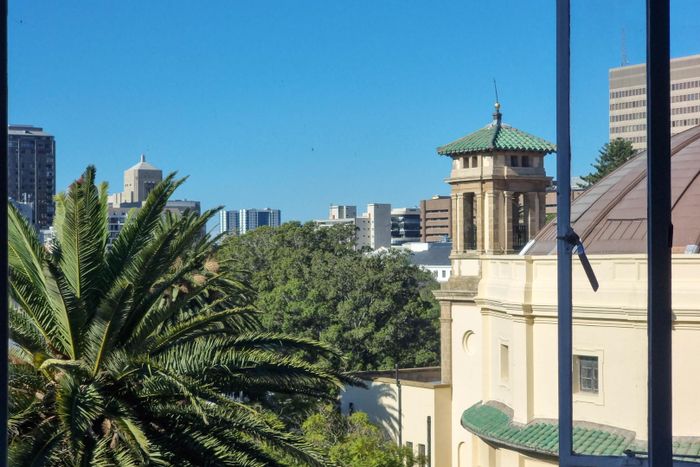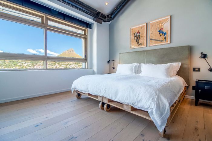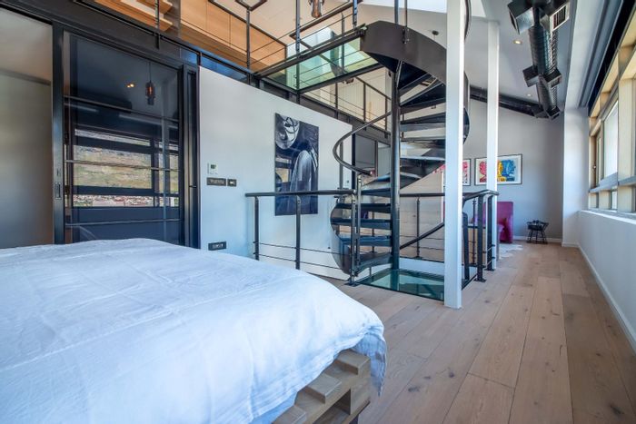 Live overlooking the City Bowl square — a loft-style urban retreat with industrial windows, spiral staircase and a rare 35 m² wind-sheltered terrace, one bedroom, one bathroom and secure parking.