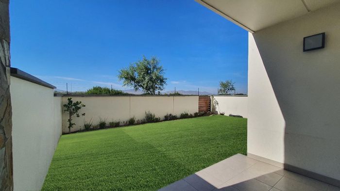 Resort-style living in Fynbos Estate; modern 3-bed, 2-bath apartment opens to a covered patio and private garden. Includes two parking bays and facial-recognition security.