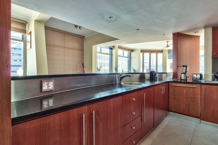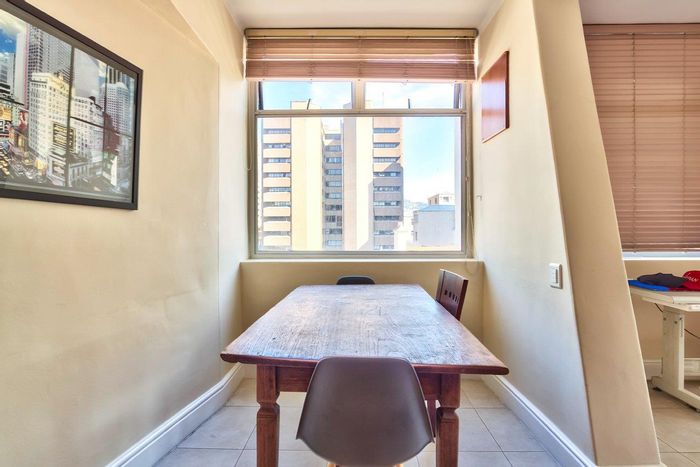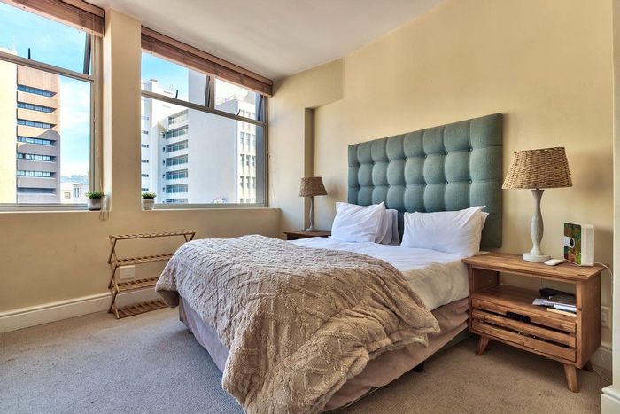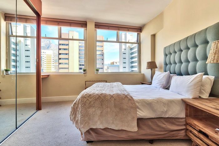 Experience vibrant Long Street living from a quiet, opposite-side 10th-floor spot — north-facing balcony with city views, load-shedding-free, 24hr security, Airbnb-friendly; one-bedroom, en-suite, parking.