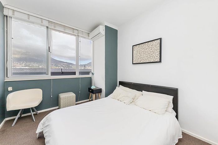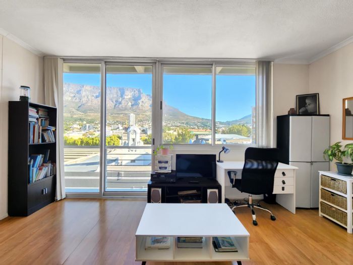 Urban living on Cape Town's edge with wide-angle Table Mountain and city views, fibre-ready studio with loft storage, convertible sleeping level, secure complex with undercover parking and short-let flexibility.