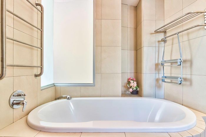 City-centre apartment near Parliament and Company's Garden with rooftop pool showcasing Table Mountain and Lion's Head views, proven Airbnb income — two beds, two baths, two secure parking bays.