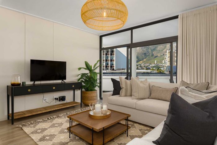 Wake up to sweeping Table Mountain views from a light-filled open-plan apartment in a lively location, plus rooftop pool, gym and braai. One-bedroom, secure undercover parking.