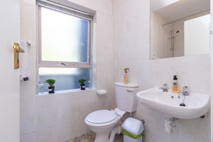 2-bedroom flat with parquet flooring, built-in cupboards, balcony views of Table Mountain, and close to cafes and shops.