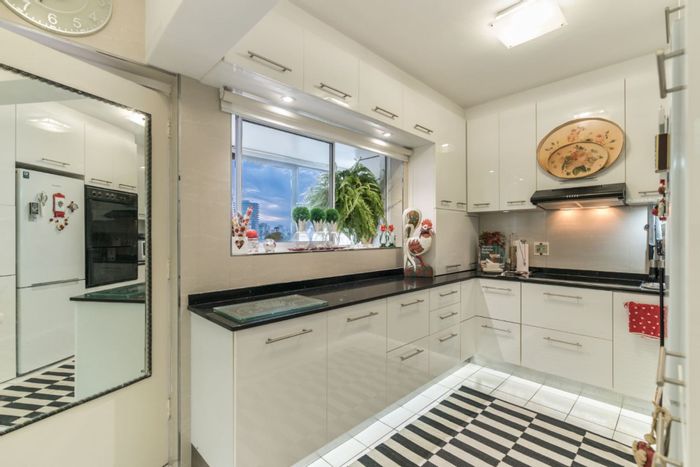 Embrace coastal-city living in Mouille Point’s iconic Art Deco block, steps from the ocean and V&A Waterfront, with panoramic sea-to-mountain views, open-plan kitchen and two en-suite bedrooms.