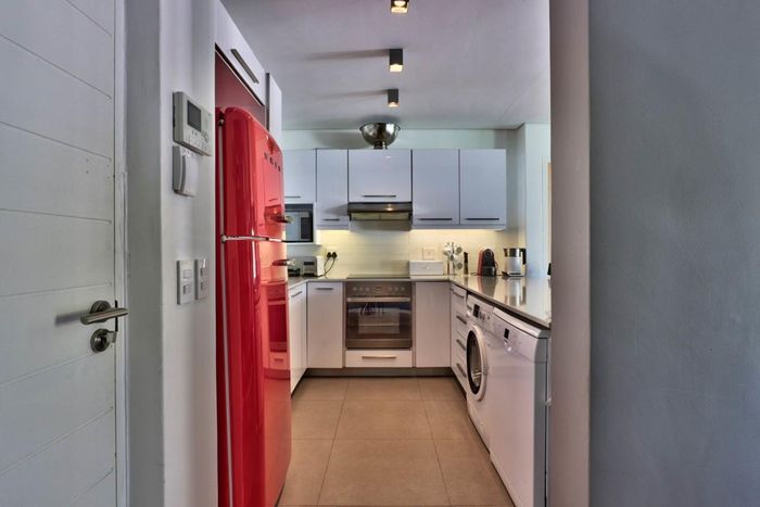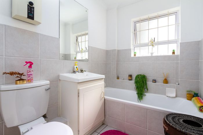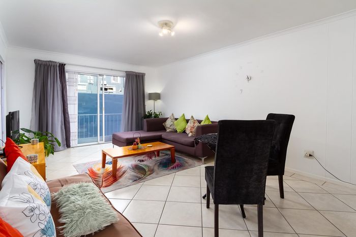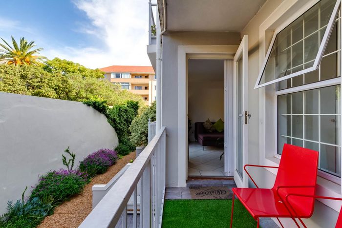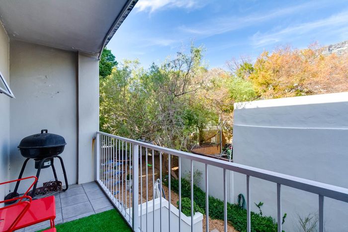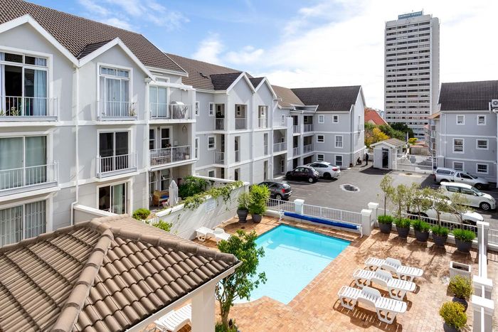 City-centre Oranjezicht living with leafy communal gardens, pool and sunny balcony views — rare 35sqm lock-up double garage with storage. Two-bedroom, one-bath apartment ideal for investors.