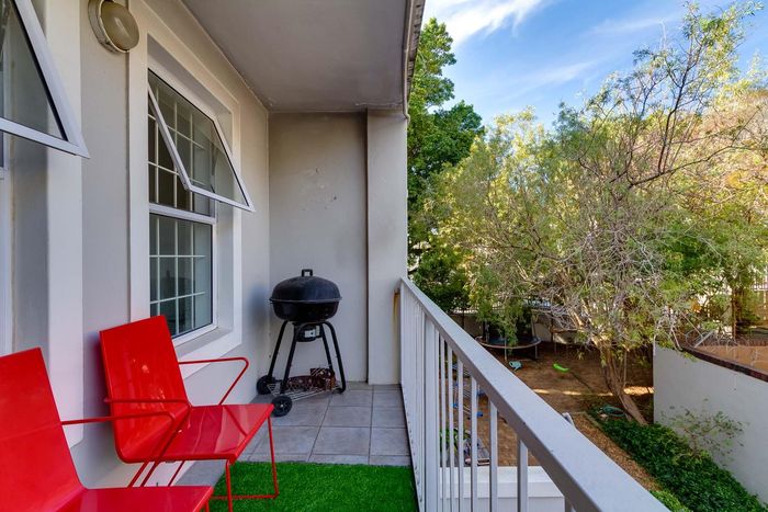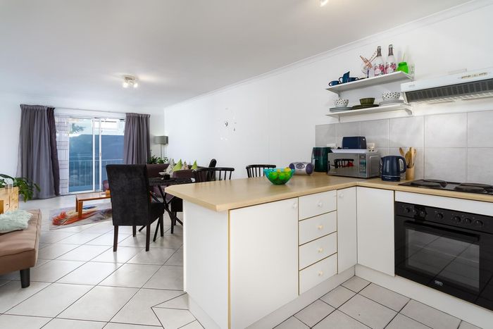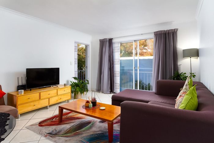 Sunny north-facing apartment on Vriende Street with balcony views of the Table Mountain cable car, open-plan living, AirBnB- and pet-friendly, two bedrooms, two bathrooms and secure garage.