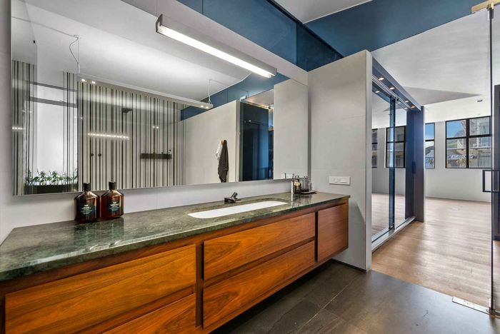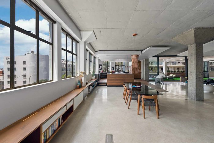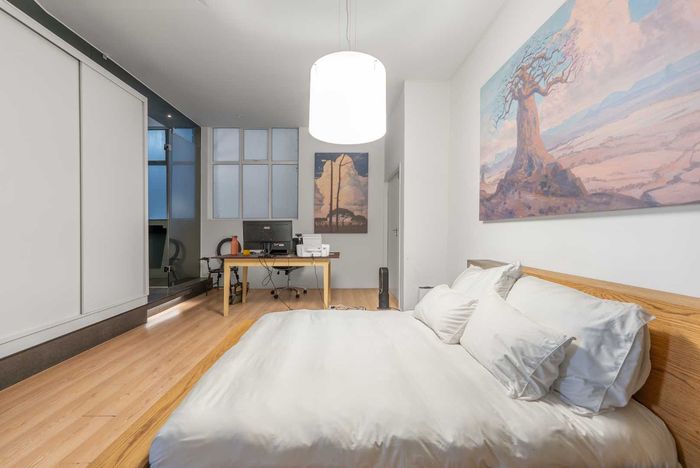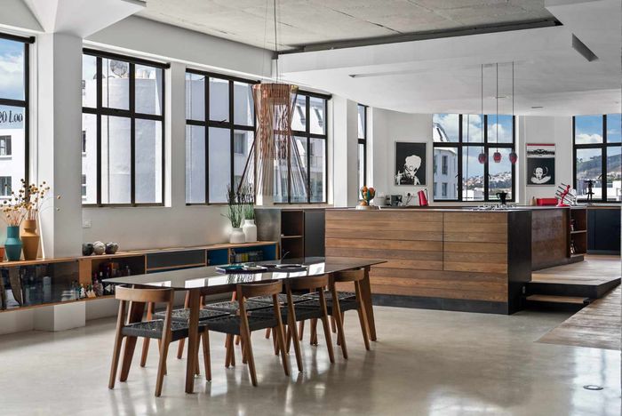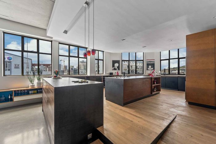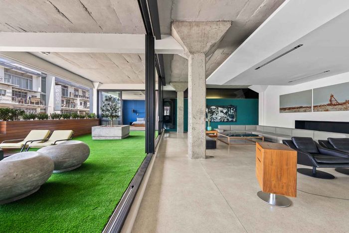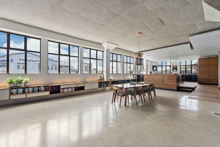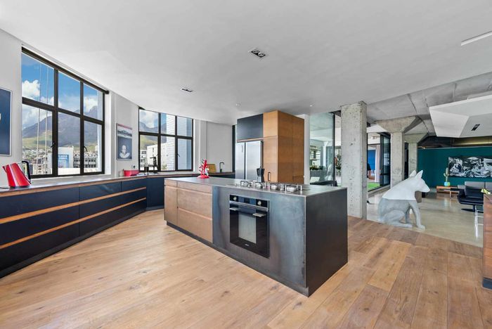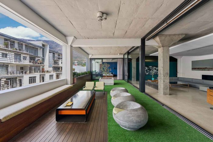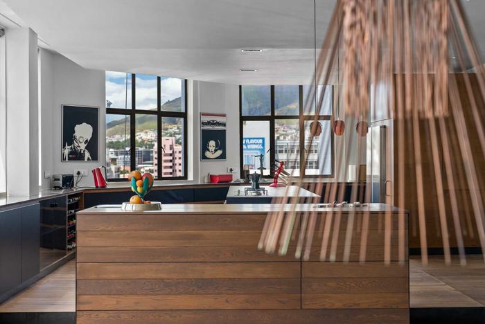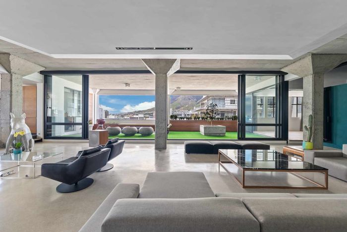 Wake up to Table Mountain filling a steel-framed wall in this double-volume industrial loft in the City Bowl, with expansive entertaining terrace, private turf terraces and 2 beds, 2.5 baths.