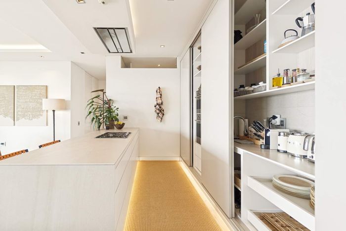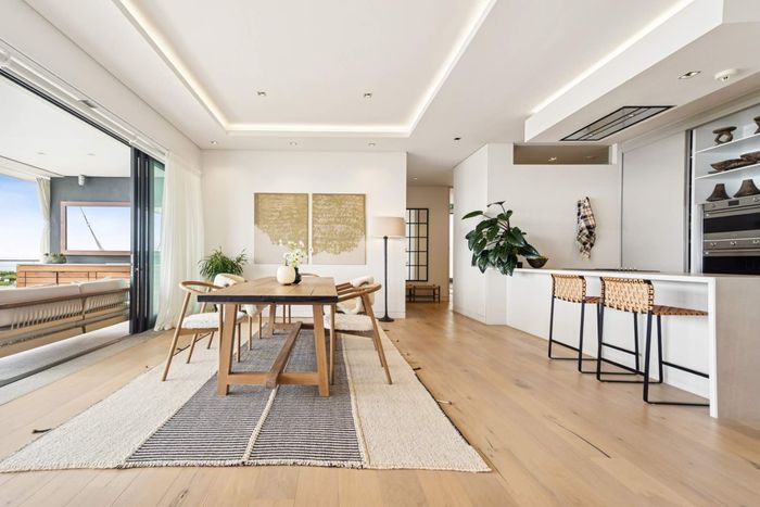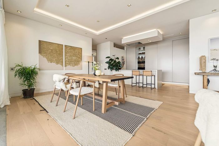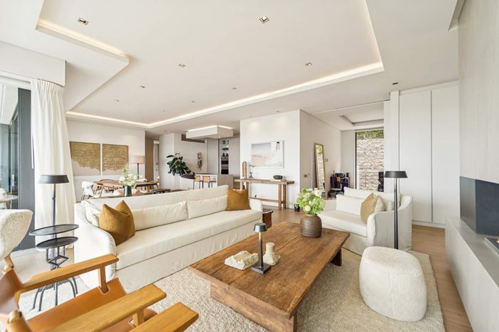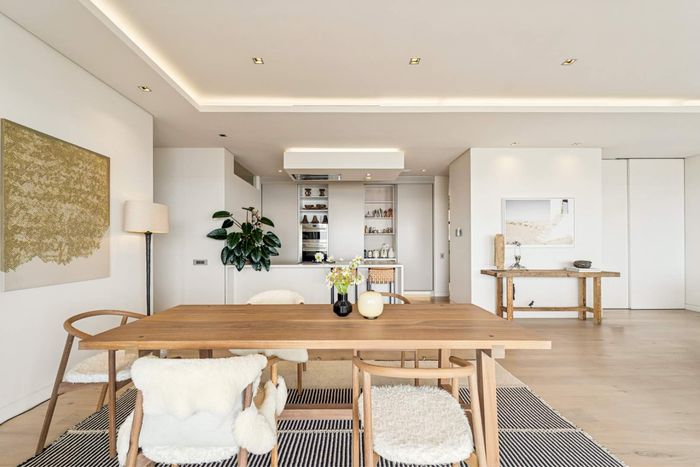 Sunlit Sea Point apartment ideal for coastal entertaining, walking distance to beachfront and Main Road, with wrap-around terraces, splash pool, three en-suite bedrooms, 3.5 baths and two covered parking bays.