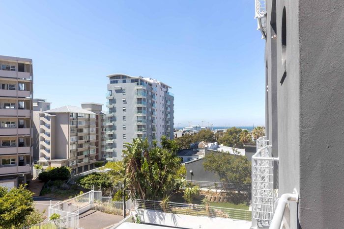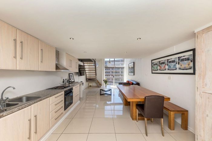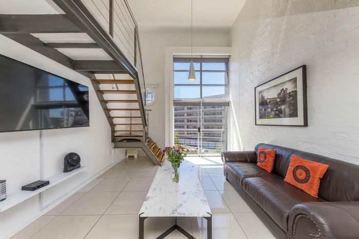 Urban living steps from the V&A Waterfront and Sea Point promenade, sun-filled open plan with balcony and an extended mezzanine ideal for WFH; secure block with pool and undercover parking.