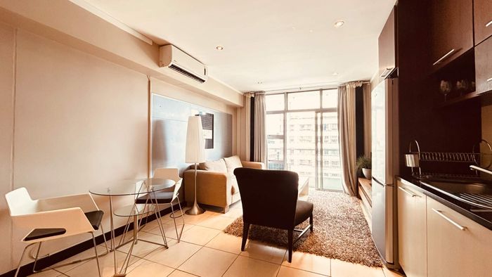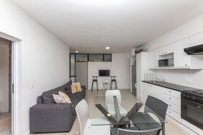 Relish golden-hour city living in Cape Town’s City Bowl, moments from Kloof Street and Company’s Garden, with a sun‑drenched balcony framing Table Mountain. One bathroom, secure parking.