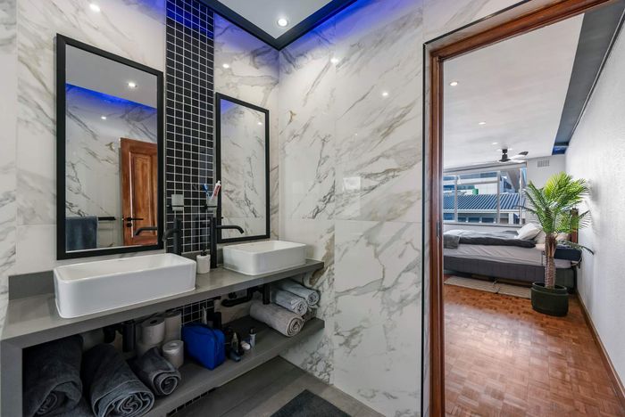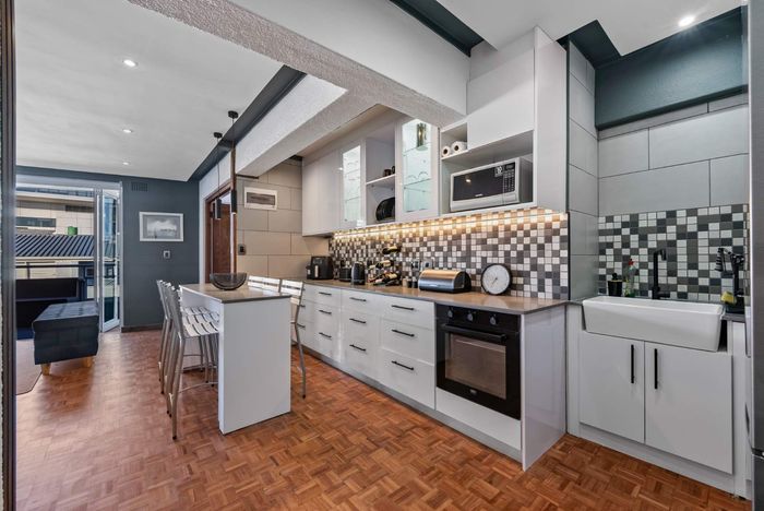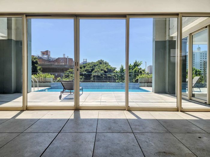 Effortless Atlantic Seaboard living in Upper Sea Point, offering expansive outdoor entertaining with private pool — townhouse-style duplex with three ensuite bedrooms and two secure parking bays.
