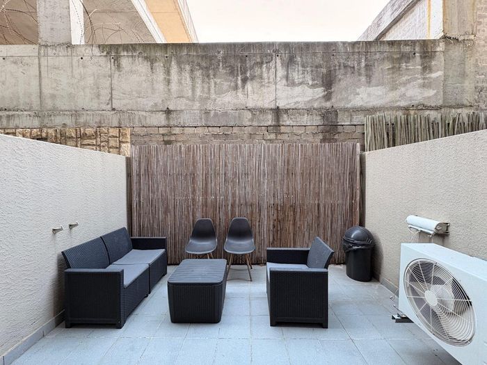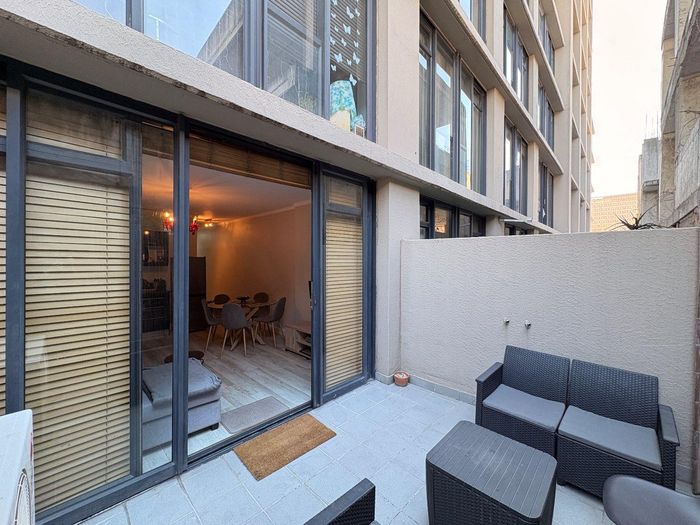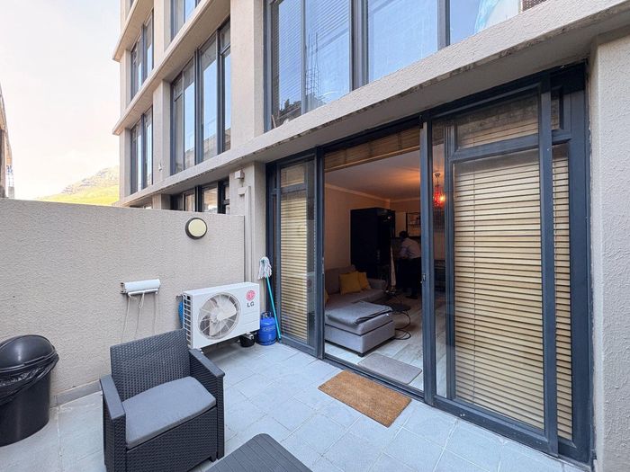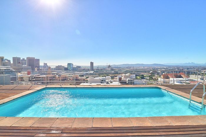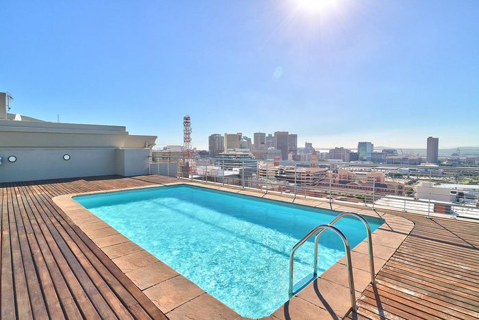 Experience vibrant Cape Town CBD living with instant access to cafés and transport; studio opens to a private patio with braai, rooftop pool and secure parking, plus a bathroom.