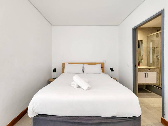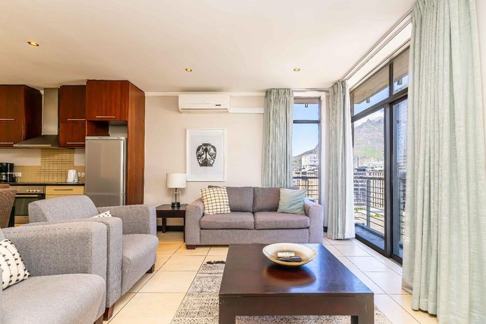 City-edge living minutes from the V&A Waterfront in Foreshore — turn-key Airbnb with mountain-view balconies, pool and gym access, plus one-bedroom, en-suite and secure parking.