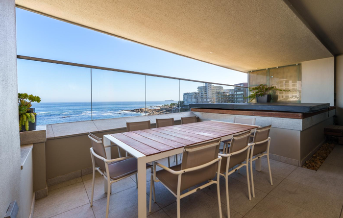 Wake up to oceanfront living on Mouille Point Promenade, steps from the V&A Waterfront, with an entertainment-sized balcony showcasing ocean and mountain views, plus three en suite bedrooms.