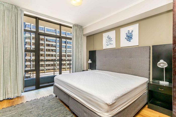 Sophisticated loft living in Cape Town's vibrant Bree Street precinct, flooded with morning light and panoramic Table Mountain views; double-volume ceilings, designer kitchen, two bathrooms and two secure parking bays.