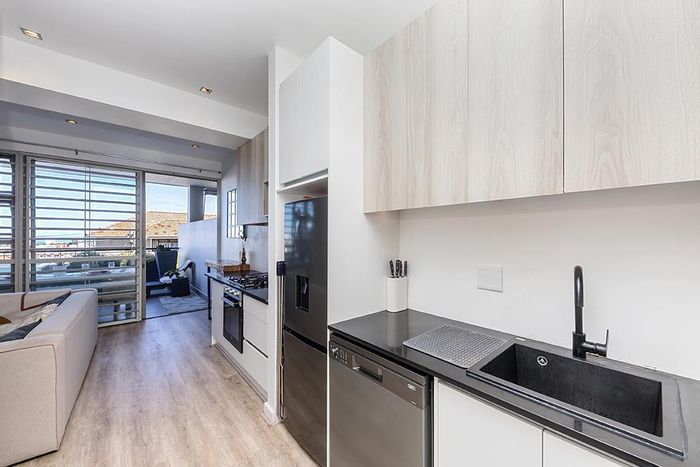Wake up to sweeping Table Mountain views from a light-filled open-plan apartment in a lively location, plus rooftop pool, gym and braai. One-bedroom, secure undercover parking.