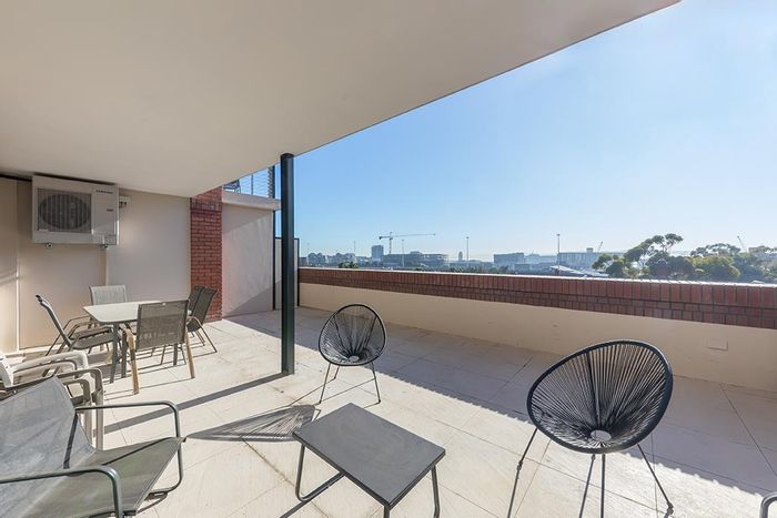 Vibrant Bo-Kaap apartment with 24 m² balcony facing Signal Hill and Lion’s Head, rooftop pool and gym, Airbnb-ready and furnished — 3 beds, 2 baths, 2 parking.