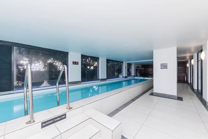 Live in vibrant Green Point with a rooftop pool and sweeping sea views, Airbnb-friendly apartment featuring two en-suite bedrooms, open balcony and 24-hour security — two parking.