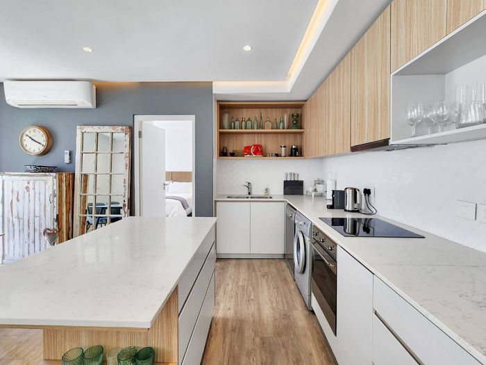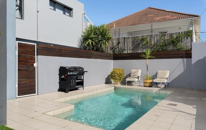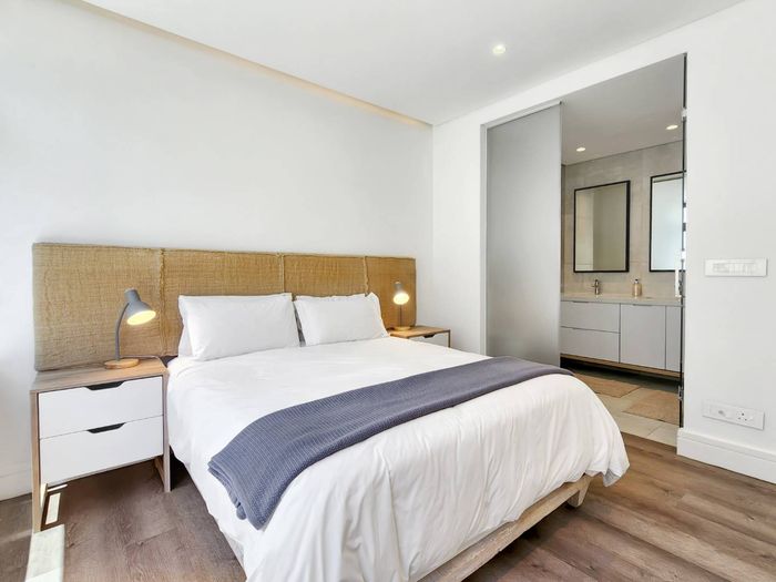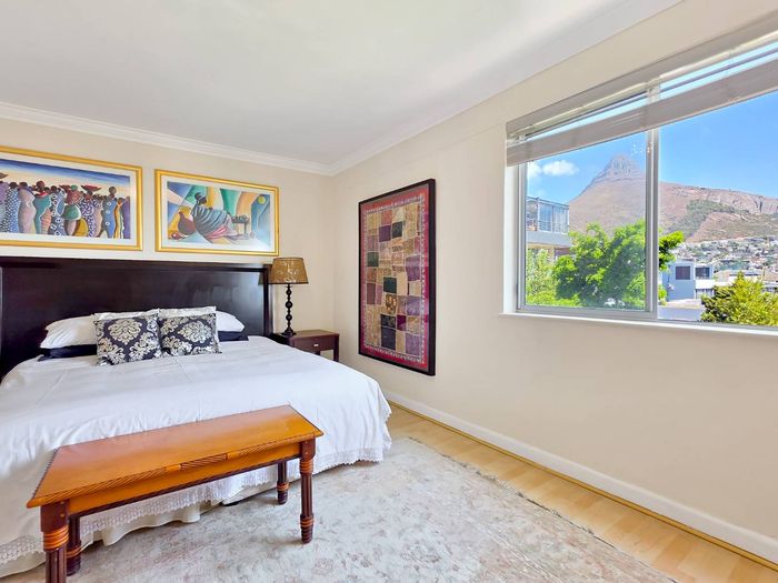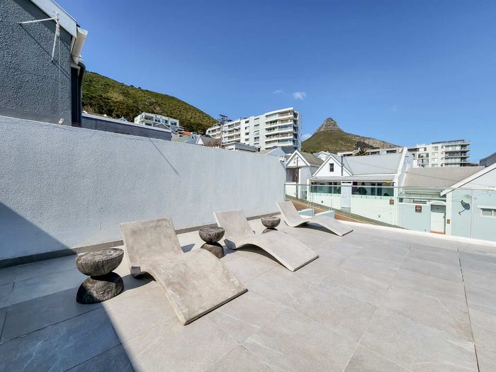 Seaside urban retreat in Sea Point, steps from the promenade and cafés, with a private resident pool and expansive wooden deck overlooking Signal Hill. Two-bed, two-bath and two parking bays.
