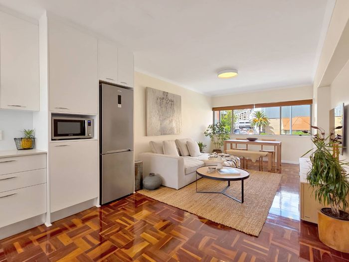Enjoy effortless Sea Point living in a quiet, managed complex steps from cafes and shops; balcony with mountain views, modern kitchen appliances and secure parking — one bedroom, one bath.