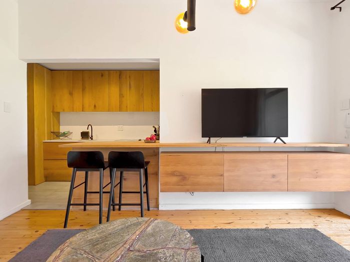 Live in the vibrant heart of Sea Point, footsteps from cafés and the promenade; creative duplex with renovation potential, furnished with double-glazed bedroom windows — one bed, one bath.