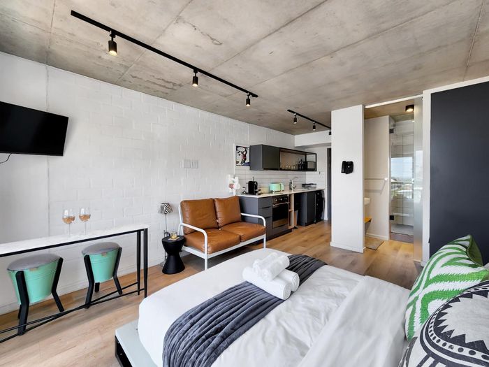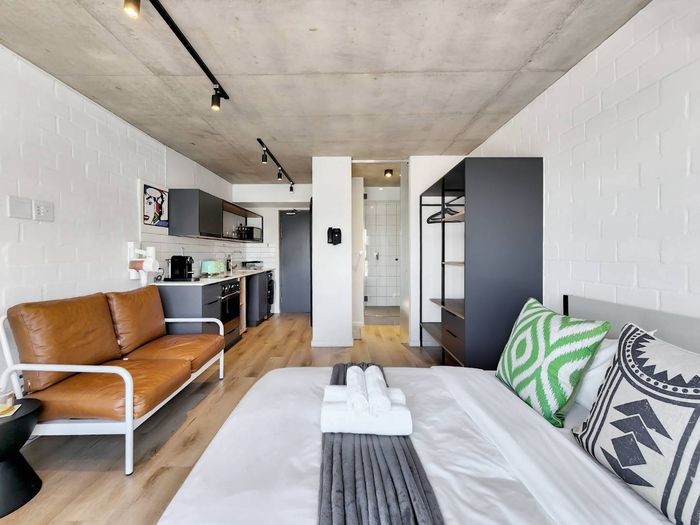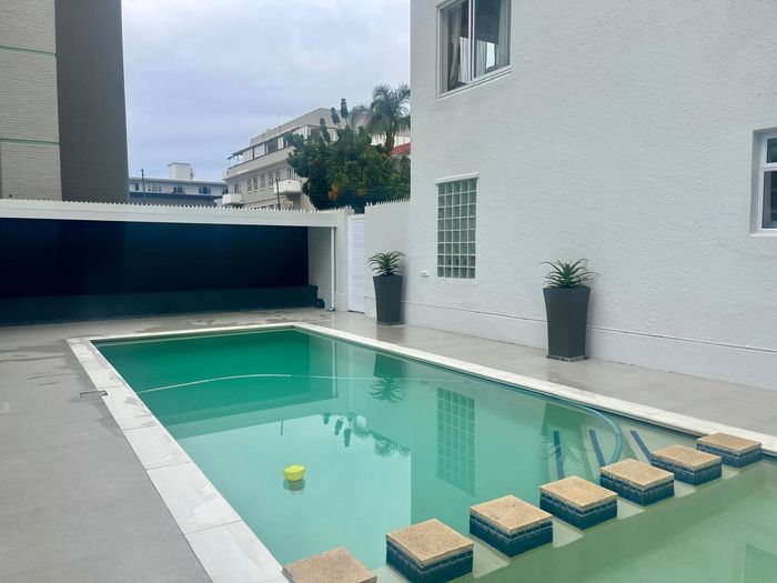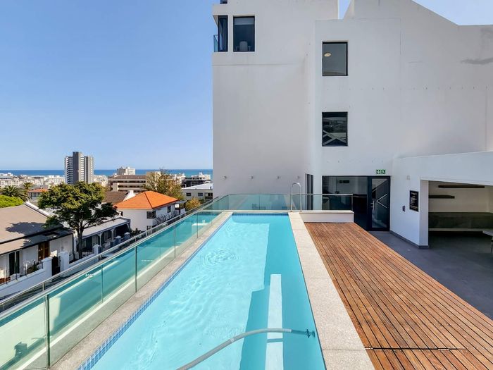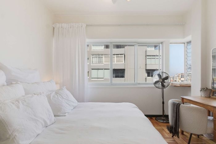 Embrace coastal living in Upper Sea Point, steps from the promenade and Sea Point strip; fully furnished studio with AC, juliet balcony and communal pool overlooking ocean, city and mountains.