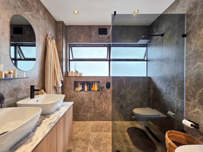 Seaside lifestyle in Bantry Hills on the Atlantic Seaboard, offering seamless indoor-outdoor living with a 291m² private garden and pool, wraparound patio and two-bed, two-bath, double garage.