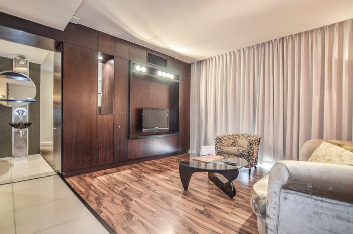Luxurious 1-bedroom apartment in Colosseum Hotel, Century City, with open-plan living, en-suite bathroom, and 28 complimentary nights annually.