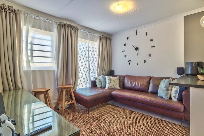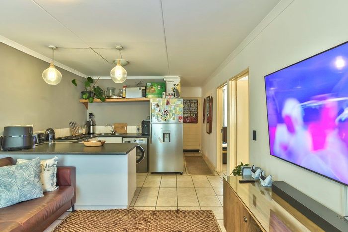 Desirable 2-bedroom Rugby apartment with built-in cupboards, secure features, mountain-view kitchen, lounge/diner, parking, and convenient location.