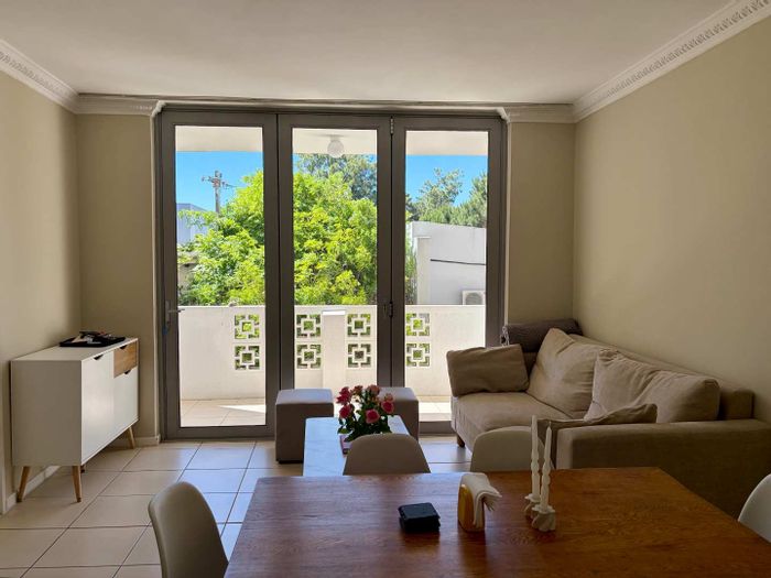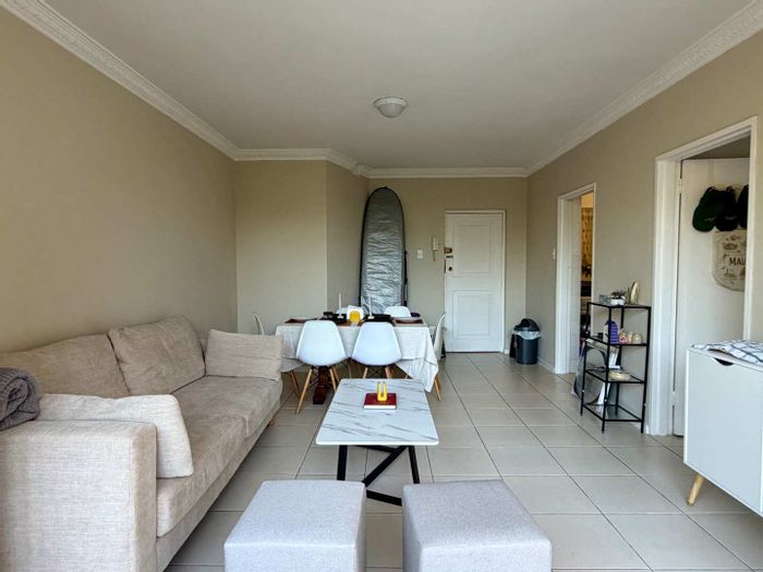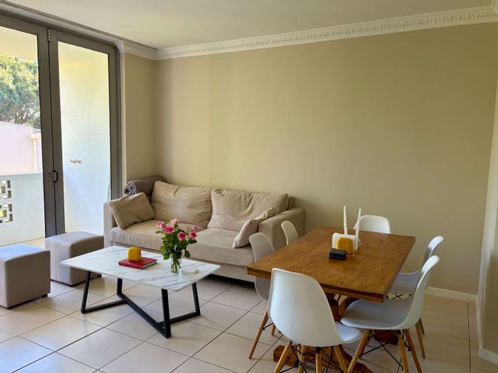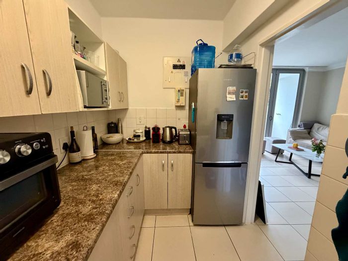 Promenade living with cafés, restaurants and V&A Waterfront minutes away; open-plan lounge/dining, light white kitchen and large enclosed balcony with side views. Two bedrooms, 1.5 baths, one open parking.