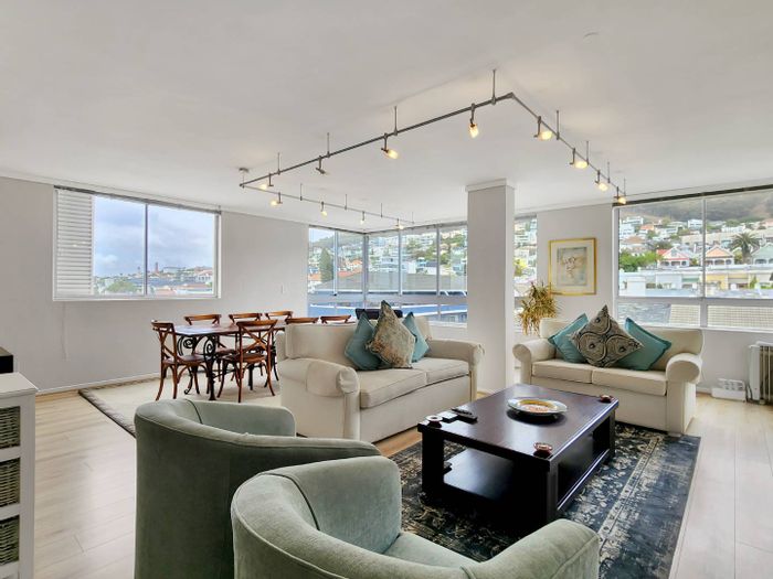 Sunlit coastal living within walking distance of Sea Point, Green Point, Mouille Point and the V&A Waterfront; corner windows with Atlantic views, Siemens kitchen, two ensuites, undercover parking.