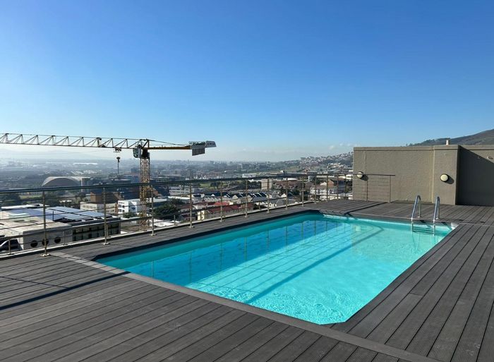 Live above the city with unobstructed Lions Head and Table Mountain views, steps from trendy Harrington Street, rooftop pool and gym, unfurnished studio with one bathroom and secure parking.