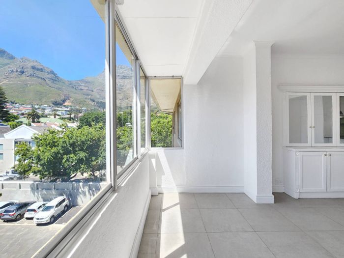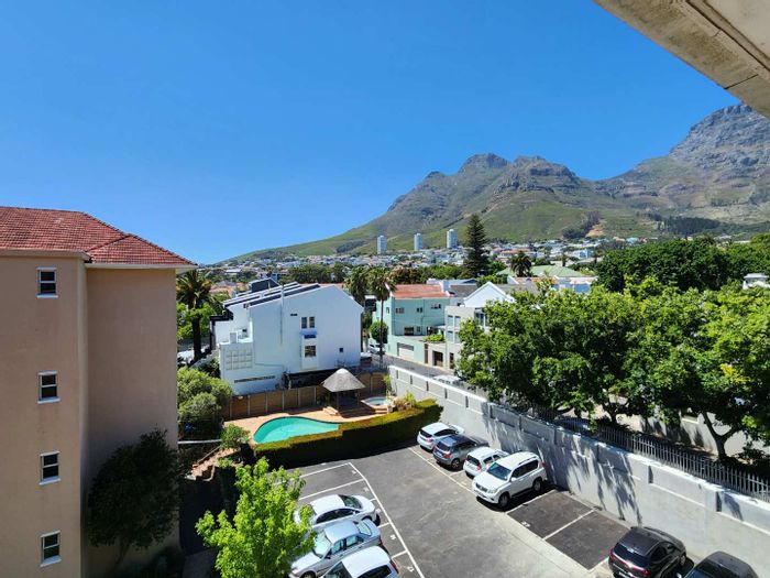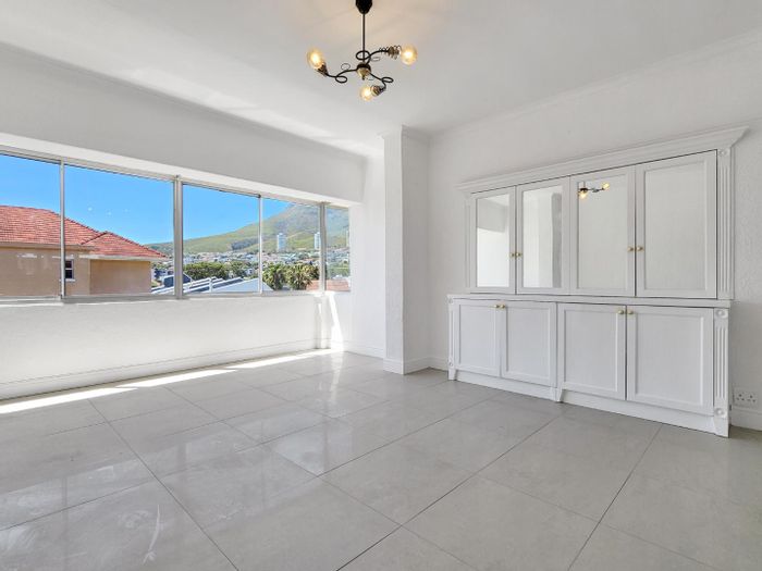 Sea Point living minutes from coastal cafés and shops; open-plan kitchen and living open to a balcony with Lion's Head and mountain views. Three bedrooms, two bathrooms, double garage.
