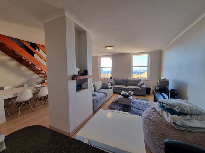 Sunny, furnished 5th-floor apartment overlooking vibrant Long Street, steps from Kloof Street and the CBD, balcony, air-con, fibre included, secure building. One bedroom, one bath.