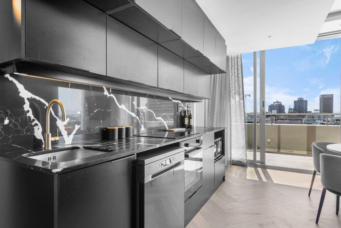 Embrace cosmopolitan Cape Town living with 180-degree Table Mountain, Lion's Head and harbour views; hotel-style pool, gym and concierge. Includes two bedrooms, two bathrooms and two parking bays.