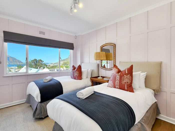 Relax in stylish coastal living in Hout Bay's vibrant centre, renovated fully furnished apartment with sweeping Chapman’s Peak sea views and long balcony. Two bedrooms, two bathrooms, single garage.